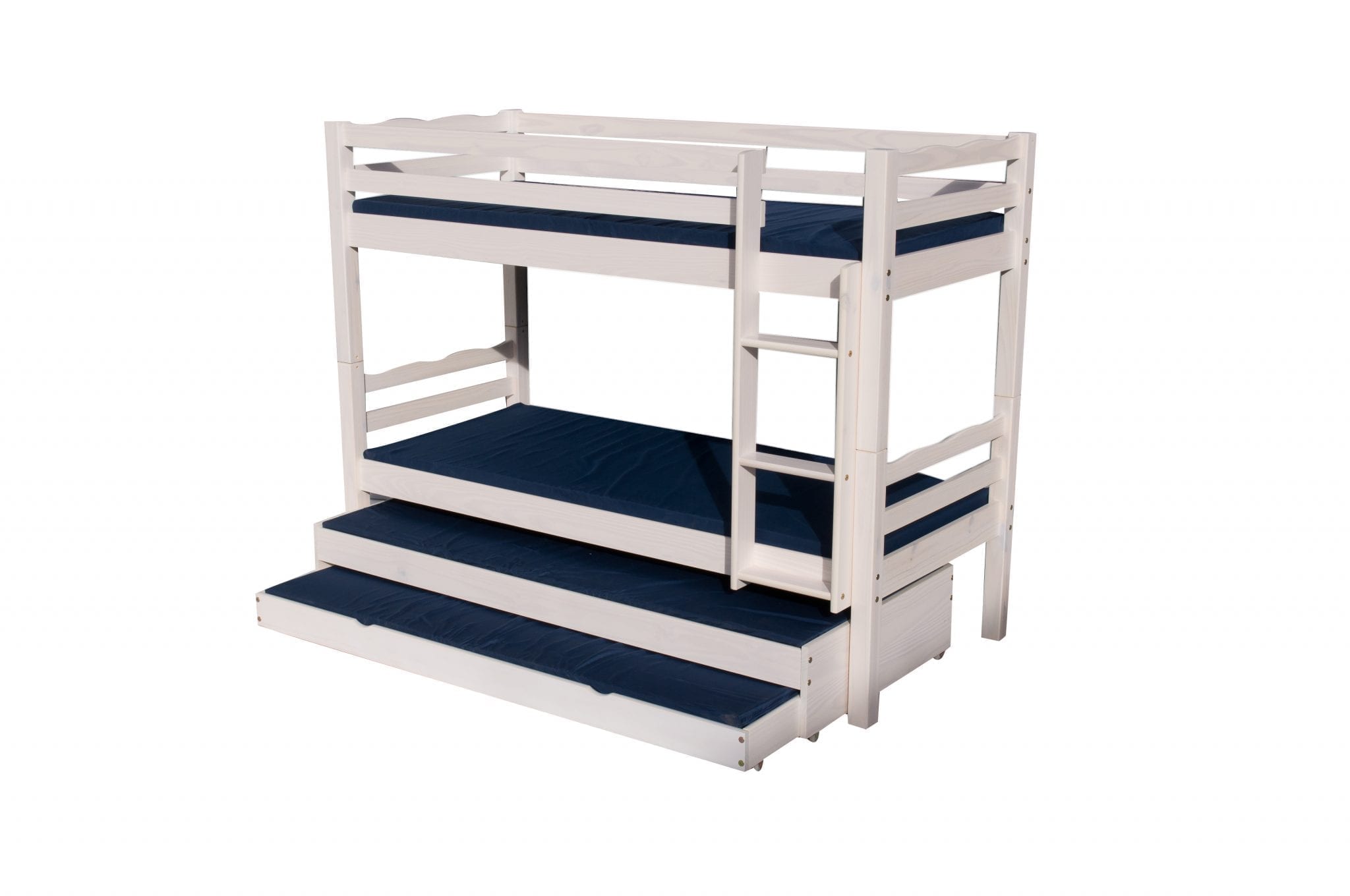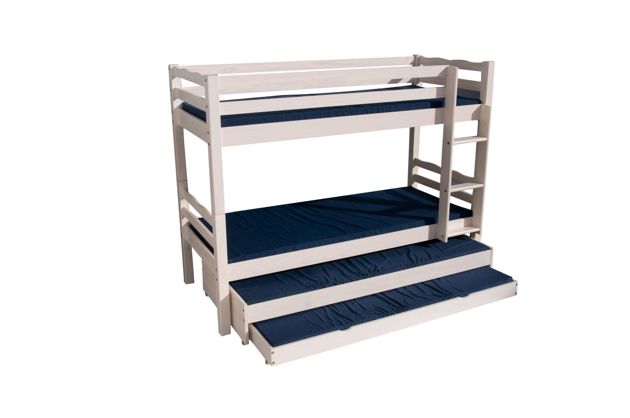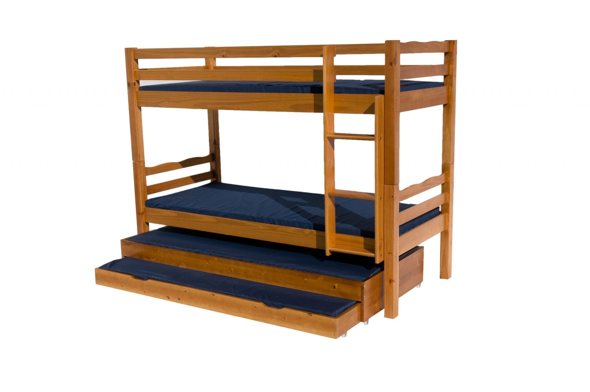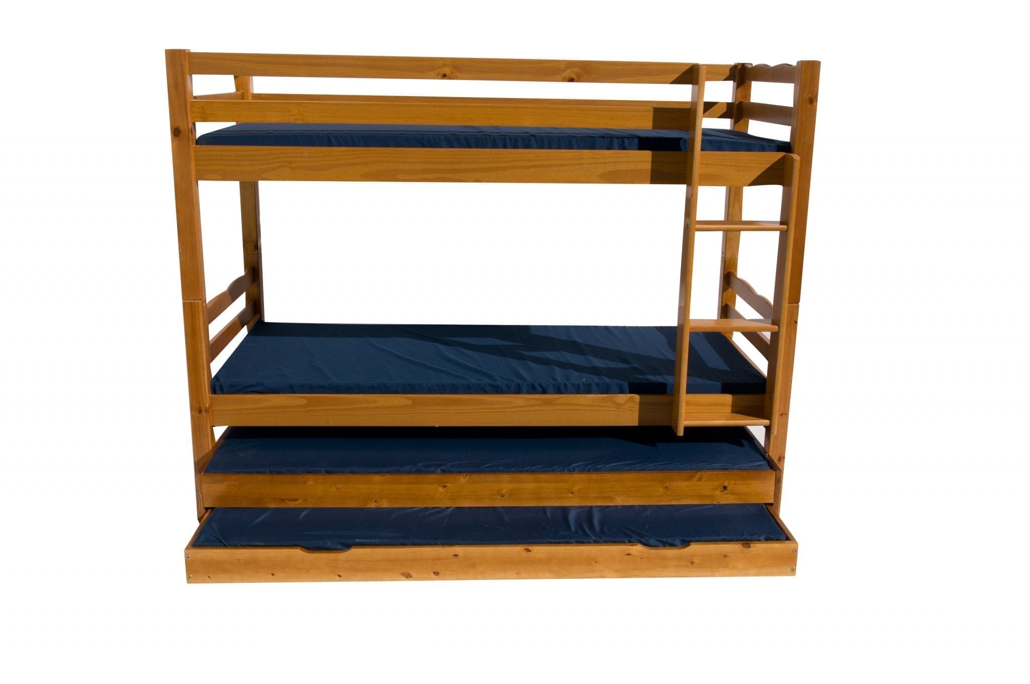מיטת קומותיים 2 מיטות נשלפות (סה”כ 4 מיטות) מעץ אורן ברזילאי מלא.